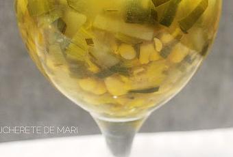 Hoy os traigo una sopa diferente, divertida y presentada de forma moderna y elegante, los ingredientes no son los convencionales. A mi me gusta mucho el maíz y presentado en una sopa resulta muy sabroso. Os animo a prepararla porque está muy rica, además se hace en un momento.