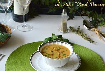 - Paul Bocuse recomienda servirlo con pan frito y queso rallado. Unas hebras de azafrán tostado y cebollino, han sido mi elección