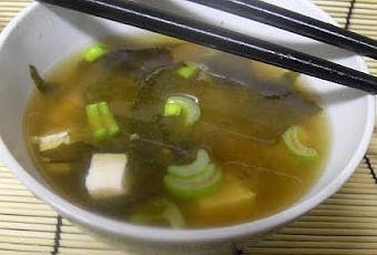 600 ml de agua5 g de pasta o polvo de caldo dashi1 puñado de algas wakame secas2 cucharaditas de pasta de miso 60 g de tofuUn trozo de troco de apio tierno y de puerro tierno.Elaboración:Poner a hidratar las algas wakame durante 15 minutos.En un cazo poner el agua a calentar, añadir el dashi en polvo y dejar cocer.Cortar el tofu en dados y añadir al caldo.Lavar el apio, el puerro y cortar en rodajas finas. Añadir al caldo como topping.Seguidamente, añadir el wakame escurrido. Retirar del fuego.