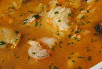5- Colocar en el cestillo el pescado, gambas, almejas y mejillones (sirven los congelados con una cáscara), añadir el agua y programar 15 min. Varoma, vel.2.