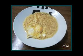 -Ponemos agua a hervir según las instrucciones del sobre-Cuando hierva echamos el contenido del sobre y removemos bien-Añadimos más fideos al gusto y removemos-Cocinamoos el tiempo indicado en el sobre removiendo de vez en cuando-Cuando quede un minuto echamos un huevo y dejamos que se termine de cocinar todo junto