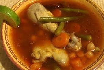 Toma un colador, cuela el caldo y reserva el pollo en un plato. Coloca nuevamente el caldo en la olla y llévalo al fuego ahora con las cebollas, repollo, zanahorias (cortados en rodajas finas) y el chile hasta que hierva y se tiernicen los vegetales.