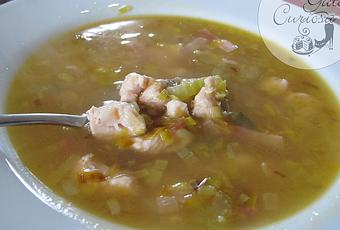 En esta sopa he combinado los puerros con pechuga de pollo, bacon ahumado y algunas hierbas para darle un toque diferente a la sopa.