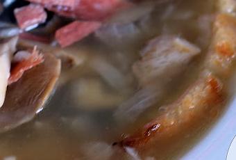 Para servir pondremos en los platos 3 rebanadas de pan bien tostado y vertemos la sopa encima, al que no le guste el pan la puede tomar directamente así.