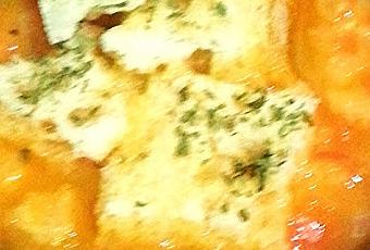 - Ponemos el horno a pre-calentar a 220ºC. Cortamos a rebanadas el pan, dos de ellas, las untamos con ajo y ponemos perejil. En una bandeja de horno, disponemos las rebanadas de pan y dejamos secarse dentro del horno aproximadamente 10 minutos. Sacamos del horno.
