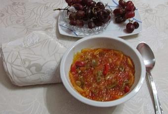 Lavamos el racimo de uvas y llevamos a la mesa en un plato aparte, son para comer una uva con cada cuchara de sopas, en mi tierra se ha comido esta sopa así, y esta muy buena.
