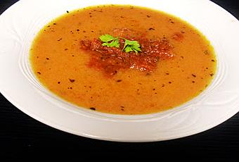 Esta deliciosa sopa de tomate pertenece al famoso y prestigioso cheff inglés Gordon Ramsay. El secreto del sabor de este plato reside en asar los tomates y la cebolla con las hierbas. Se requiere un poquito de tiempo y paciencia, ya nos contaréis que os parece.