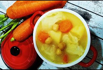 Bueno, sea otoño o verano por el tiempo que tenemos la verdad que me gusta que los niños coman bien. Así que una buena sopa de verduritas y garbanzos siempre es una buena opción.