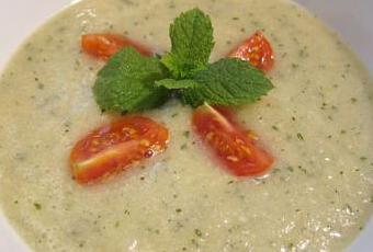 Sopa fría de melón, almendras y hierbabuena