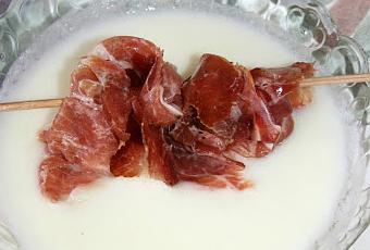 - Deja enfriar en nevera y sirve con unas brocheta de lonchas de jamón.