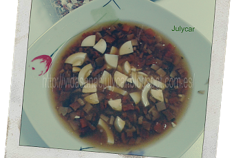 4 cucharadas soperas de sopa juliana deshidratada1 litro de agua2 huevos sal