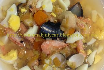 Hoy menú completa 1º plato, 2º plato y postre todo light y sano, espero os guste Sopa de marisco socorrida, rápida