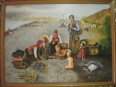No puedo describir el placer de recorrer el Museo Municipal de Málaga, éste museo situado a pie de la coracha, a los pies de La Alcazaba y quedar fascinada con un cuadro, un óleo de 3 x 3 metros, de magnifico pintor malagueño Horacio Lengo (1838 - 1890). Es una estampa típica de Málaga, la sitúa en las playas de Bellavista, a la derecha el Monte San Antón, viéndose la bahía de Málaga al fondo, La Farola (el único faro del mundo femenino), la Málaga industrial con sus chimeneas en pleno rendimiento (finales siglo XIX), la literatura costumbrista de la época no dedica un episodio concreto a esta costumbre aunque sí se cita a propósito de narraciones de fiestas populares como la de ¡A pelar la pezuña!, del día de San Antón, en las playas de la Caleta, en donde la moraga era complemento de bailes y cantes flamencos en las ventas de la playa. Y lo que más me gustó, los pescadores tirando del copo, los más “pudientes” sentados en el rebalaje, y los niños acurrucados al calor del fuego, preparando y asando sus espetos: una moraga, encima de las redes, la manta raya, la jibia, las sardinitas, los boquerones, se ven las conchas de las almejas y búsanos.Ese día pensé ¿sería alguno de esos niños mi abuelo o quizás la niña con su toquilla cubriendo su cabeza mi abuela?Así voló mi imaginación, por ello le pedí a un artista malagueño, un gran pintor, que me hiciese una copia (mucho más pequeña lógicamente) para tener y disfrutar cada día viendo tan magnifico cuadro.Este pintor que me ha hecho la copia del original, bastante más pequeño lógicamente, del gran maestro Horacio Lengo, es mi suegro…