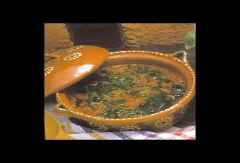 4cucharadas de aceite50gramos de tocino picado1/2cebolla picada1chile verde picado3papas peladas y cortadas en cubitos3tomates pelados y cortados en cubitos2dientes de ajo picados2litros de caldo de pollo200gramos de espinacas lavadas y rebanadas en tirasPreparacion:Calentamos el aceite en una cacerola y se frie el tocino, Agregamos la cebolla y el chile para que se acitronen. Ahora añadidos las papas cocinamos a lumbre mediao moderada, hasta que esten medio cocidas. Sazonamos con sal y agregamos los tomates y los ajos, seguimos cocinando todo junto por unos minutos mas.Seguidamente, vertimos el caldo hirviendo lo dejamos cocer hasta que las papas ya esten suaves. Incorporamos las espinacas y cocemos ya solo por unos minutos masNota Receta para 8 personas