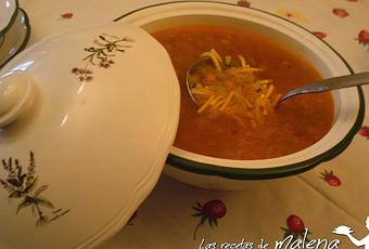 Esta sopa es una bomba de vitaminas y minerales por la combinación de verduras que lleva, es por tanto recomendable para todo el mundo, incluso para personas que deseen bajar de peso ya que el aporte calórico es mínimo debido a su bajo contenido en grasa y en hidratos de carbono.Si utilizáis una olla rápida al reducir considerablemente el tiempo de cocción, no se pierden tantos nutrientes, en especial las vitaminas y minerales.La podéis preparar con antelación e incluso hacer más cantidad de la necesaria y congelarla para otro día.