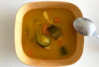 Empieza el buen tiempo y aquí en casa seguimos tomando caldos y sopas, pero ahora son diferentes, más ligeros y con algún toque que permita digerir bien para hacer de la comida un momento único y de disfrute. Hoy os traigo una sopa que hizo Dani y que le quedó para chuparse los dedos.