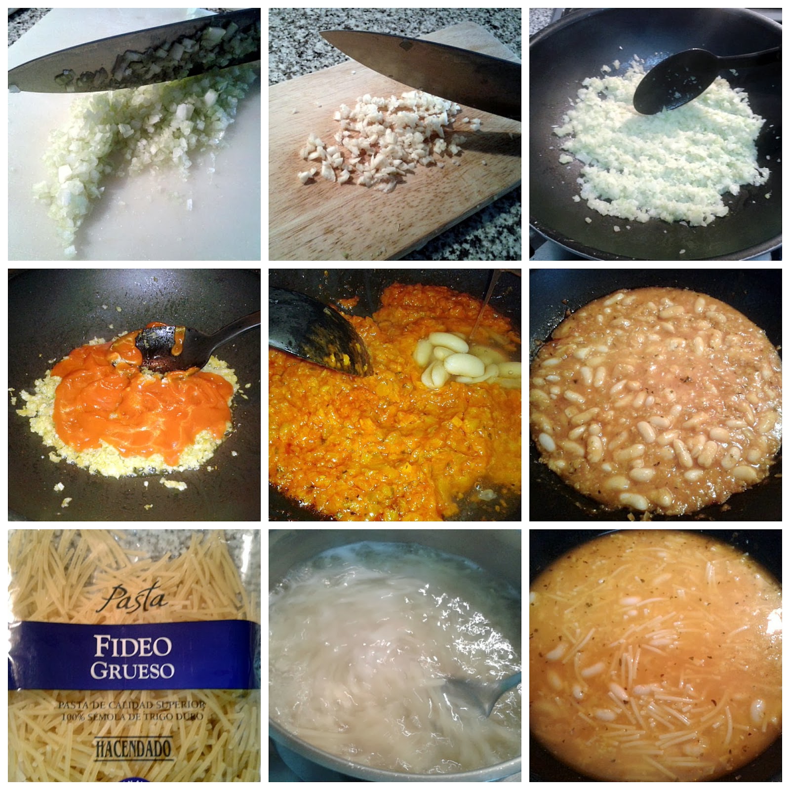 - 400 gramos de pasta corta, pueden ser fideos guesos como los de la foto del paso a paso, fideos para fideuá o simplemente spaghetti rotos con las manos