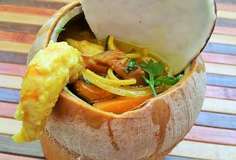 - Servimos la sopa en las cáscaras se coco que nos habían sobrado.