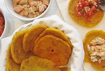 Típica comida chilenaLas sopaipillas son tortas de calabazaEl ceviche es salmón marinado en limónY el pebre es como una vinagreta de tomate