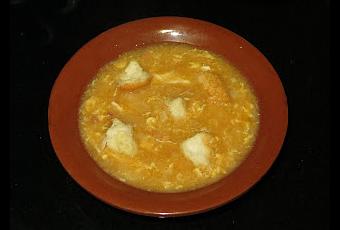 Ingredientes:- Medio litro de caldo de carne.- 50 gramos de jamón en tacos.- 50 gramos de pan duro.- 2 dientes de ajo.- 1 huevo grande.- Una cucharadita de pimentón.- Aceite de oliva virgen extra.- Sal (opcional).Elaboración:Echamos un chorrito de aceite en la jarra, añadimos los ajos laminados y programamos 1 minuto velocidad 1 temperatura 120ºC potencia de calor 10.Agregamos el jamón, la mitad del pan duro troceado y programamos durante 3 minutos, velocidad 1 temperatura 120ºC potencia de calor 6. Espolvoreamos con el pimentón y removemos con la espátula.Echamos el caldo y programamos 30 minutos a 100ºC de temperatura y potencia de calor 8. Cuando queden un minuto para terminar incorporamos los huevos batidos y ponemos velocidad 1. Añadimos el resto del pan a la jarra, servimos y ya está lista para degustar.