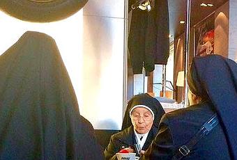 Dos emblemas de Italia, tan diferentes como extraños entre sí, tan ajenos que parecen ignorarse, pero reunidos en una misma imagen...Con toda la discreción de la que pude hacer acopio para tan indiscreta ocasión, sin contar con la debida autorización, que por otra parte nunca hubiera sabido como pedir, capté estas dos imágenes por las que quiero enviarles todo mi agradecimiento a las religiosas, envuelto en la cordialidad de mis saludos.