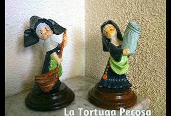 El otro dia en casa de mis padres me encontré con estas dos figuritas que pinté de bien canija, eran tres sores..bueno una pasó a mejor vida, solo quedan dos pero siguen brillando y tienen el mismo tono que el primer dia.