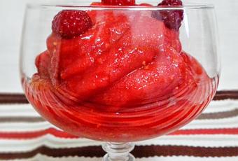 Otra de las recetas que hicimos con las frambuesas de La Vera que me regaló mi compañera Pilar Muñoz, de su cosecha propia. Un sorbete delicioso y refrescante.