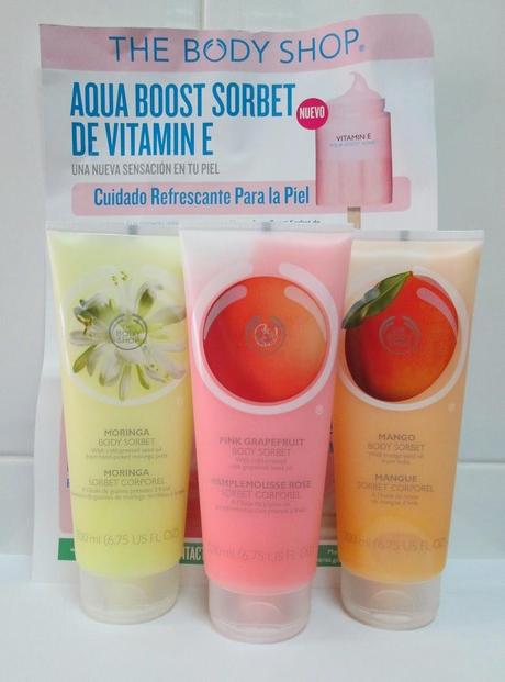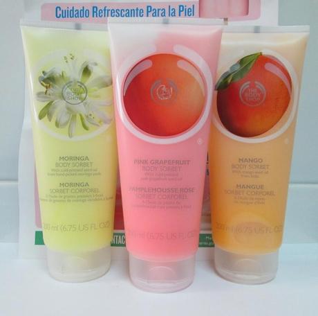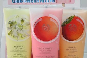 La verdad, es que el packing es muy acertado, bonito, fresco, y muy acorde para este buen tiempo. Yo tengo tres sorbetes corporales: moringa, pomelo rosa y mango.