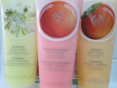 Estas lociones corporales, se conocen con el nombre de "Sorbete Corporal", y están disponible en 5 aromas diferentes: de los cuales, 4 son con aroma afrutado (fresa, mango, melocotón y mandarina) y una con fragancia floral (moringa).