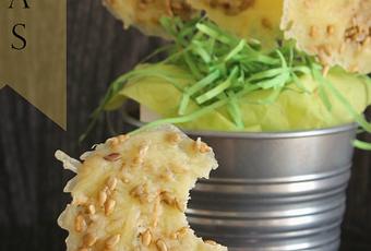 Las piruletas de esta foto son con queso emmental, pero las he hecho también, en otras ocasiones, con parmesano. Con queso parmesano quedan mucho más crujientes, pero vigila para que no se te quemen en el horneado.
