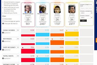 Lo comparamos con Lukaku, delantero de su antiguo equipo, Everton, y con dos delanteros del Barça, el que se queda, Neymar y el que se ha ido, Alexis.