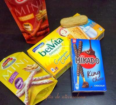 Mi hija también se alegró al descubrir una cajita de Mikados y unas galletitas de yogurt que para el desayuno son geniales... y para el recreo unos stiks de salchichón y chorizo estupendos.