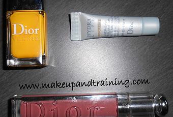 1 Laca de colección 118 Acapulco de Dior 1 Ultra-Gloss Glow 652 de Dior Addict1 Muestra de Hydra Life BB Cream spf30 de Dior