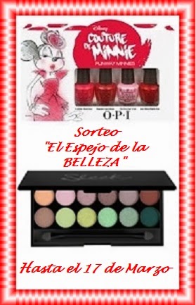 El premio consistirá en:1. Paleta "Garden of Eden" de Sleek. 2. Set cuatro mini-esmaltes de O.P.I. e.l. Minnie.Espero que os gusten los regalitos que he escogido, que por supuesto son completamente nuevos.