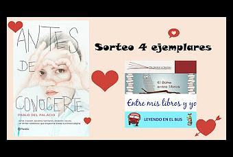 Hoy Pedro de El Búho entre libros, Manuela de Entre mis libros y yo, Teresa de Leyendo en el bus y nosotras, De lector a lector, venimos con un nuevo sorteo que esperamos sea de vuestro agrado: El sorteo conjunto de Antes de conocerte de Pablo del Palacio