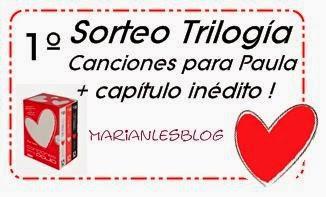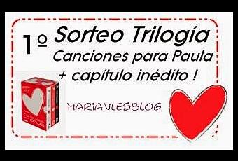 ¡Hola a todos este sábado por la mañana! Si, era raro que no os trajera la entrada para un nuevo sorteo, pero tranquilos, que aquí está XD Hoy vengo a hablaros de un mega sorteo que realiza una de mis niñas de Whassap Bloggero por llegar a los 50 seguidores. Sortea nada más y nada menos que...¡la trilogía de "Canciones para Paula" con un capítulo inédito! Guay, ¿verdad? y los requisitos son muy, muy sencillos. Os dejo abajo el banner enlazado con la entrada para que veáis por vosotros mismos que no miento. Suerte a todos y animaos ^^