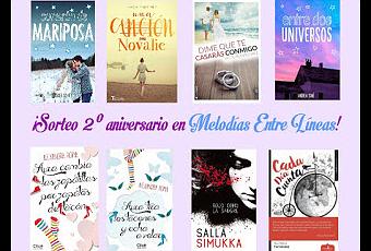 El blog Melodías entre líneas tiene un sorteo activo por su 2º aniversario. ¡Muchísimas felicidades! (A mí sinceramente 300 y pico seguidores en tu segundo año no me parecen pocos, así que enhorabuena ^_^).