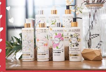 - Leche Corporal “Rose Envoûtante” - está fabricada a base de glicerina vegetal y enriquecida con manteca de karité, reconocida por sus propiedades hidratantes. El producto deja la piel suevamente hidratada y perfumada gracias al extracto natural de rosas.