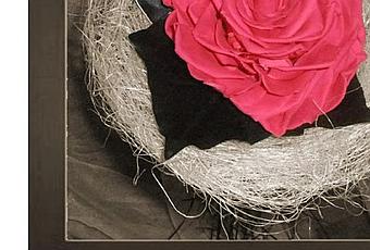 Se trata de una composición de diseño floral totalmente artesanal y única. Elaborada con pétalos de rosa. Nace de la unión de cada pétalo al siguiente hasta darle la forma precisa.