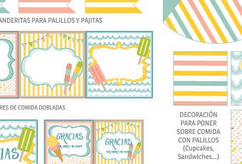 La Belle Carte ofrece dos colecciones especiales para fiestas infantiles de verano: colección HELADOS y colección MAR. Cada colección está compuesta por: