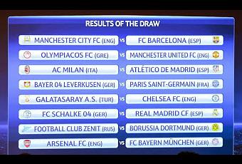 El resto de emparejamientos dejó Olympiacos-Manchester United, Leverkusen-PSG, Galatasaray-Chelsea, Zenit-Borussia Dortmund y Arsenal-Bayern.