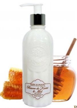 - Una Leche Corporal de Manteca de Karité y Miel - enriquecida con manteca de karité, aceite de almendra dulce y aloe vera, elementos reconocidos por sus propiedades hidratantes. Perfuma suavemente la piel con un delicado aroma de miel de la Provenza. Le proporciona suavidad y bienestar. Está libre de parabenos. Su tamaño es de 250 ml.
