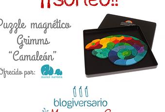 En este caso se trata de un precioso puzzle magnético "Camaleón" de Grimms, que nos ha cedido Mami Natura (¡muchas gracias Jennifer!).