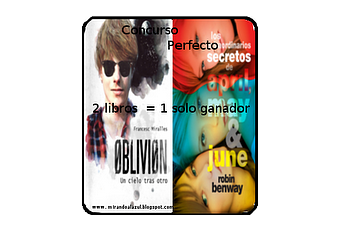 El blog Mirando al azul organiza un sorteo en el que el premio es un pack de libros formado por "Oblivion" y "Los secretos de April, May y June". Yo me apunto, ¿y tú? Vamos, anímate, es muy sencillo participar.