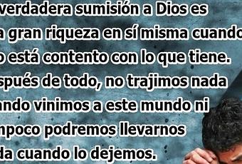 La Biblia dice, “La verdadera sumisión a Dios es una gran riqueza en sí misma cuando uno está contento con lo que tiene. Después de todo, no trajimos nada cuando vinimos a este mundo ni tampoco podremos llevarnos nada cuando lo dejemos.” (1 Timoteo 6:6-7 NTV).