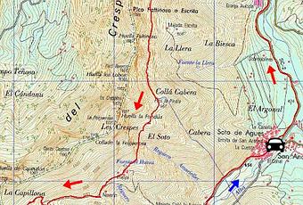 De esta localidad parten dos sendas de pequeño recorrido: una, nos conduce al Torrexón de Villamoréi y otra, más larga y dificultosa, discurre bajo las cumbres de la Sierra del Crespón y que será la que seguiremos durante buena parte de nuestro recorrido de hoy