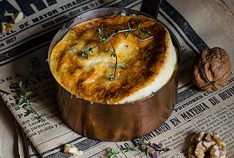 Esta vez lo he preparado con un queso azul traído de Normandía, unas peras pochadas a moso de compota y unas nueces de California troceadas.