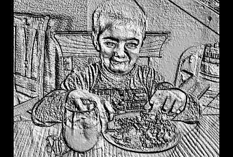 Fue cortando trozos alargados, de forma geométrica, a los que daba toques con el cuchillo. Como si los estuviera adornando. Cuando tuvo varios, el abuelo dijo: Toma, prueba a ver si te gusta. Lo que me dió mezclaba blanco y marrón casi por igual. Estaba muy bueno; sentí cosquilleos en la boca y la nariz y quería pedirle más.