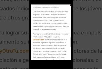 SoyOtroTu.com es una plataforma multifuncional en español, por lo pronto, basada en la Web y de suscripción gratuita, diseñada para resolver los problemas asociados al uso adictivo de las redes sociales por parte de los usuarios de la telefonía celular.