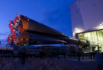 La nave Soyuz TMA-18 llegó en tren a la plataforma de lanzamiento en el Cosmódromo de Baikonur en Kazajistán, el pasado miércoles 31 de marzo.